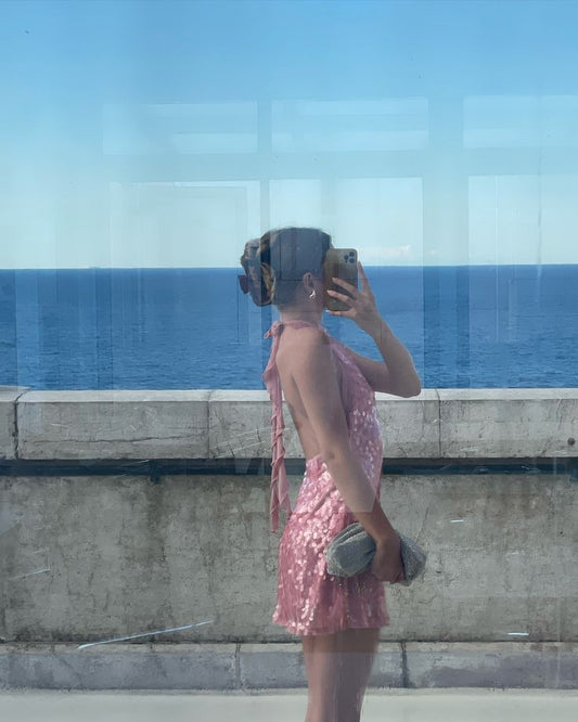 Pretty A Line Halter Pink Sequin Formal Homecoming Dresses 18th Birthday Outfits Graduation Dress Short Mini Hoco Dresses DH2509