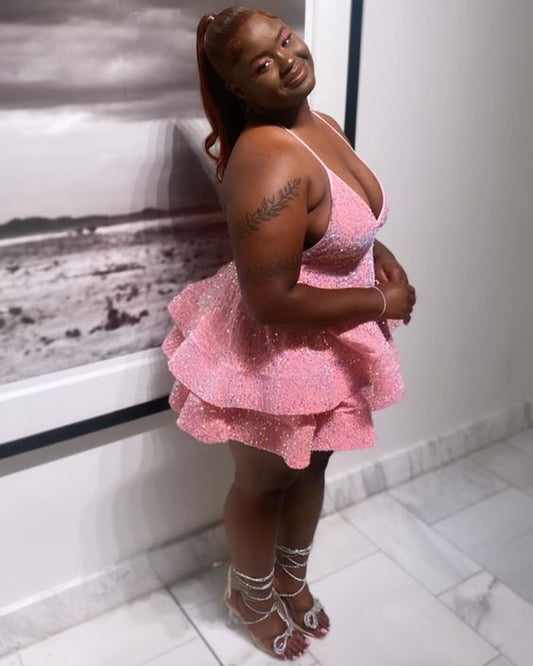 Pink Sequin Short Party Dress Homecoming Dresses fg2448