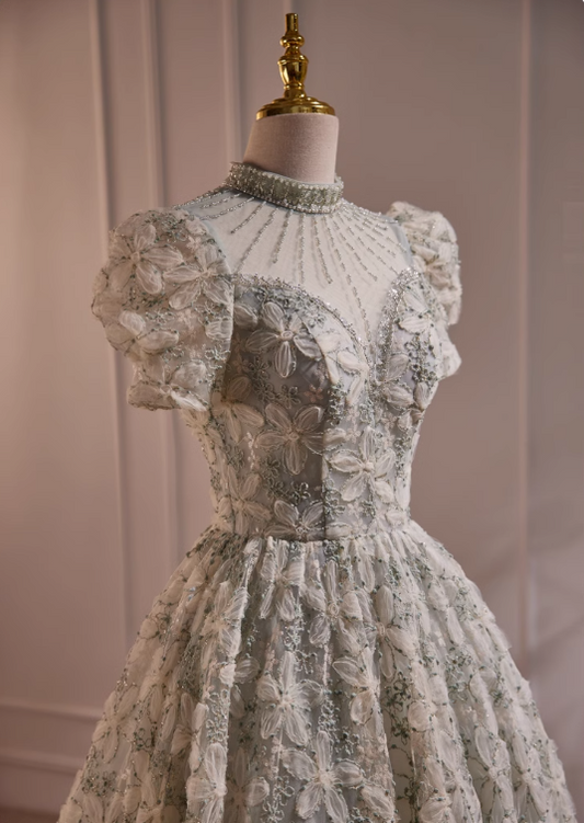 Gray A-line mesh sequined beaded birthday dress, gray homecoming dress ED0949