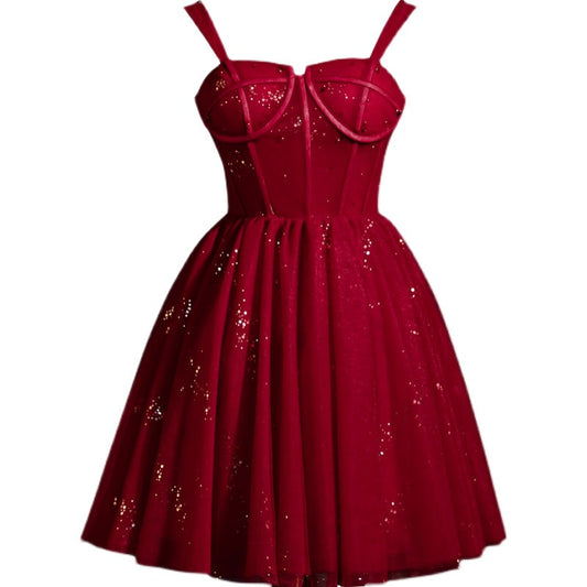 Hot girl strappy sequined backpack hip suspender homecoming dress P3121