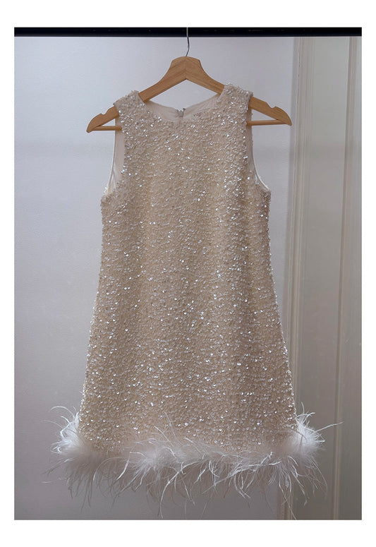 Cute A line Scoop Neck Short White Sequin Formal 8th Grade Homecoming Dresses Summer Middle School Hoco Dress Homecoming Outfits DH93