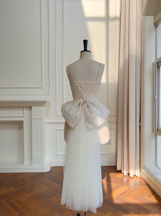 Cute A line Spaghetti Straps White Sequin Short Formal 8th Grade Homecoming Dresses Summer Middle School Hoco Dress Homecoming Outfits DH297