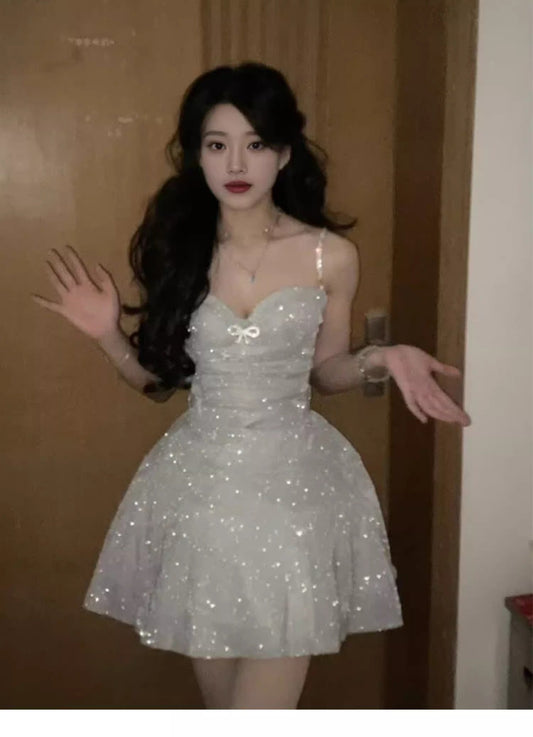 Classy A Line Spaghetti Straps Sequin White Short Mini Formal 8th Grade Homecoming Dresses Middle School Hoco Court Dress 21st Birthday Dress Hoco Outfits DH1797