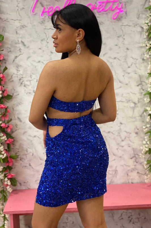 Blue Sequin Strapless Cutout Short Homecoming Dress fg1525
