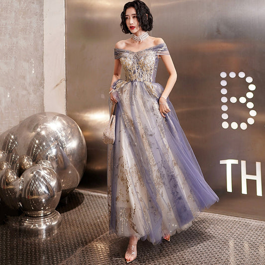 Cute tulle sequins long prom dress evening dress 8419