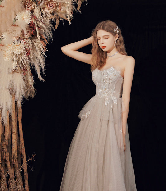 Cute tulle sequins long prom dress evening dress 10189