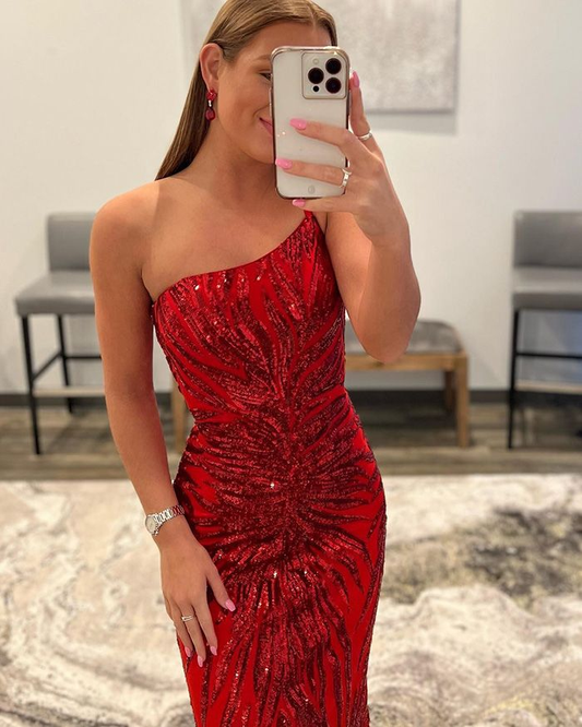 Red Sequin Mermaid One Shoulder Prom Dress gh2487