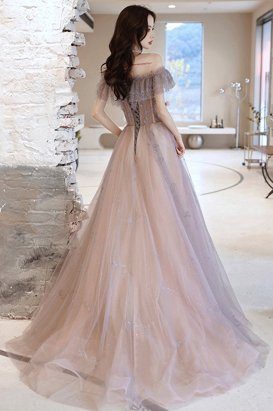 CUTE TULLE SEQUINS LONG PROM DRESS EVENING DRESS cg19391