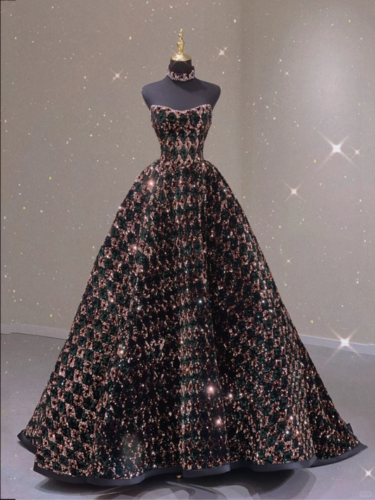 Pretty Ball Gown Sweetheart Black Sequin Long Prom Dresses Graduation Dress High School Classy Evening Dresses DP367