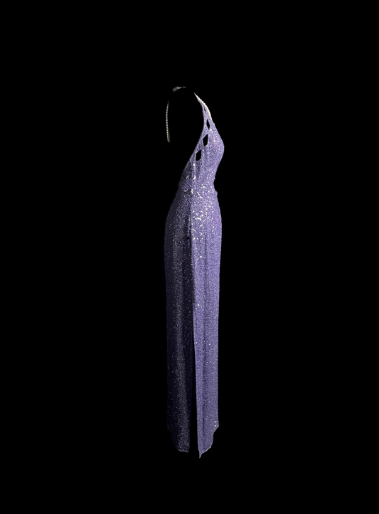 Vintage Mermaid Halter Sequin Lilac Backless Long Prom Dress Party Dress Graduation Dresses DP2043