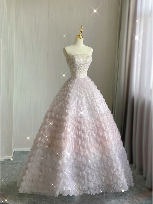 Pretty Ball Gown Strapless Sequins Beads Long Prom Dresses Graduation Dress High School Classy Evening Dresses DP378