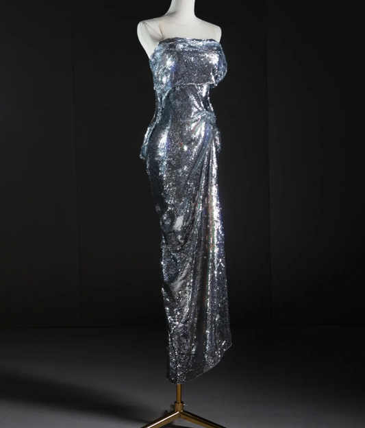 Pretty Mermaid Strapless Sleeveless Sequin Long Silver Prom Dresses Simple Evening Dresses DP463