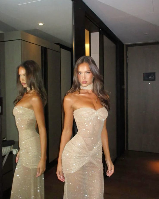 Sexy Mermaid Strapless Champagne Sequin Formal Gown 23rd Birthday Dress Prom Dresses 20th Birthday Outfits W0365