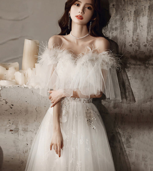 V neck tulle a line Prom Dresses sequins evening dress gh2672