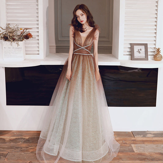 Stylish v neck tulle sequins prom dress evening dress 8234