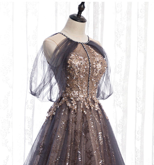 Stylish tulle sequins long prom dress, evening dress 8218