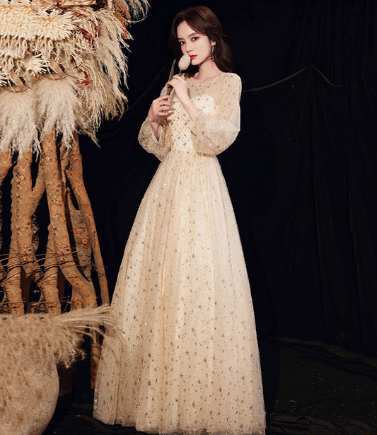 Stylish tulle sequins prom dress long sleeve evening dress 10028
