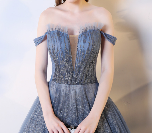 Sparkling tulle sequins long prom dress, evening dress 8105