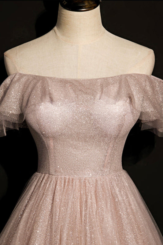 Shiny tulle sequins long pink prom dress A-line evening dress fg964