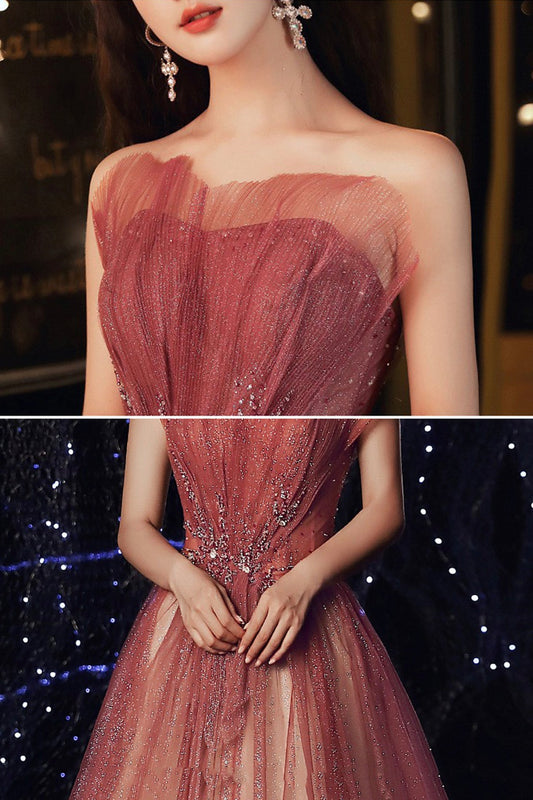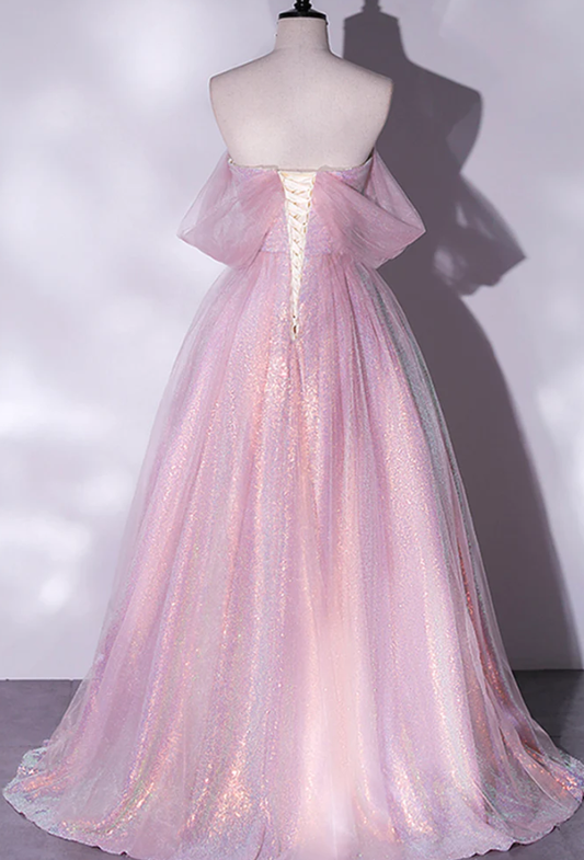 Shiny Sheath Strapless Light Pink Sequin Prom Dress Evening Dress SH2536