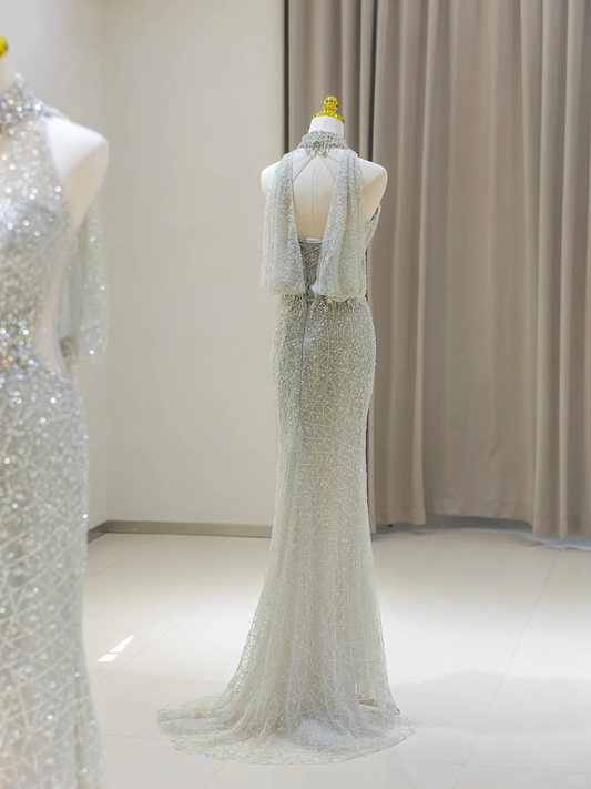 Sexy Mermaid High Neck Silver Gray Sequin Long Prom Dresses Party Dress 20th Birthday Outfits Graduation Dresses DH2079