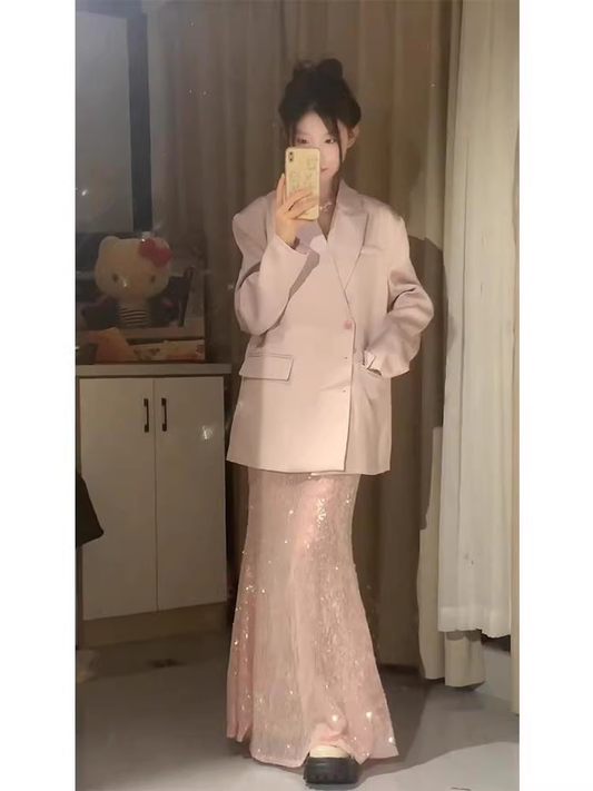 Retro Mermaid Spaghetti Straps Pink Sequin Ankle length Prom Dresses Birthday Outfits SD537