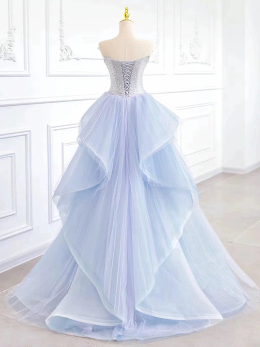 Pretty Mermaid Blue Silver Beads Sequin 18th Birthday Dress Prom Dress Birthday Outfits For Women D2695