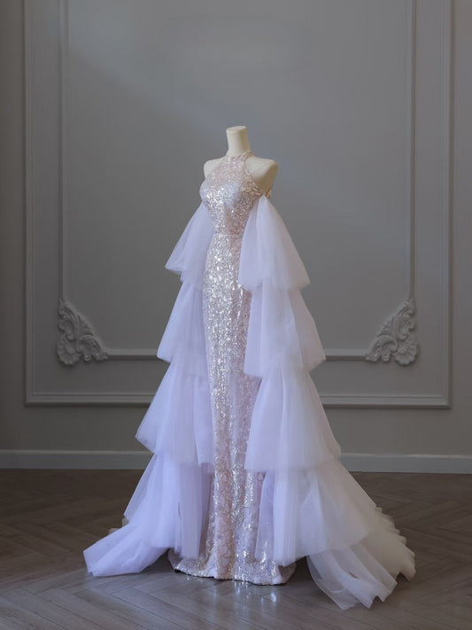 Pretty Mermaid High Neckline Sequin Beads Long Prom Dresses Formal Evening Dress SD2336