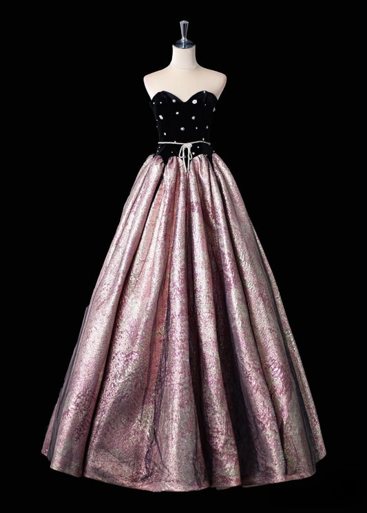 Pretty Ball Gown Strapless Black Sequin Prom Dresses Evening Dress P2463