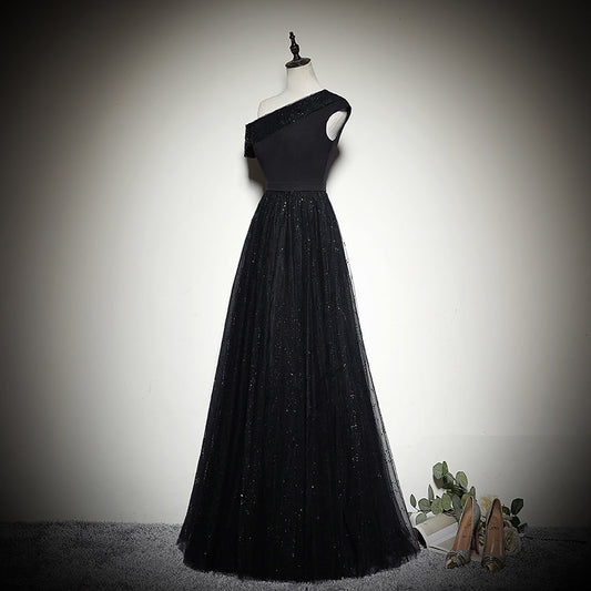 One-shoulder sequined new black evening dress prom dress fg147