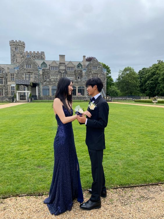 Navy Blue Sequin Prom Dresses Sexy Evening Dress SH085