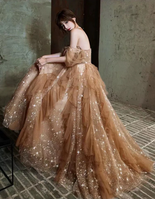 Off the Shoulder Brown Sequins Prom Dress gh2460