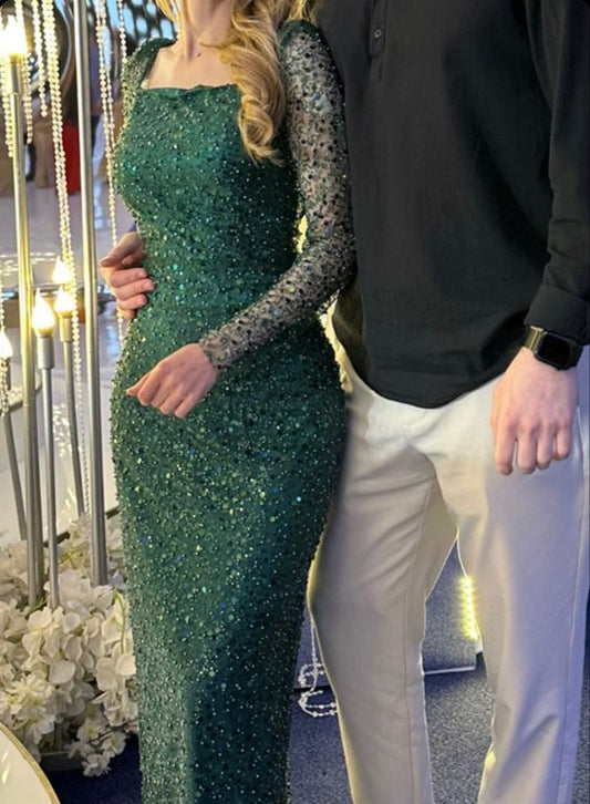Green Sequin Prom Dress Long Sleeves Evening Gown fg4675