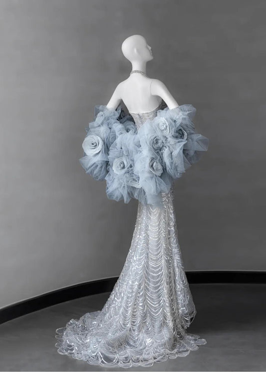 Gorgeous Mermaid Strapless Silver Gray Sequin Long Prom Dresses Graduation Dresses DP655