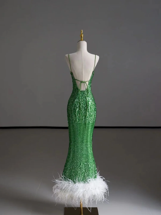 Gorgeous Spaghetti-Straps Mermaid Prom Dress Sequins Formal Wears gh1943