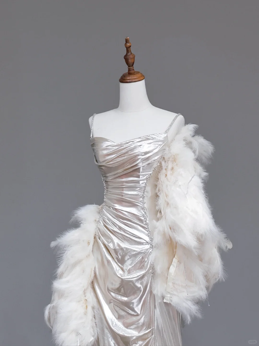 Gorgeous Mermaid Spaghetti Straps Silver Gray Sequin Long Prom Dresses Graduation Dresses DP656