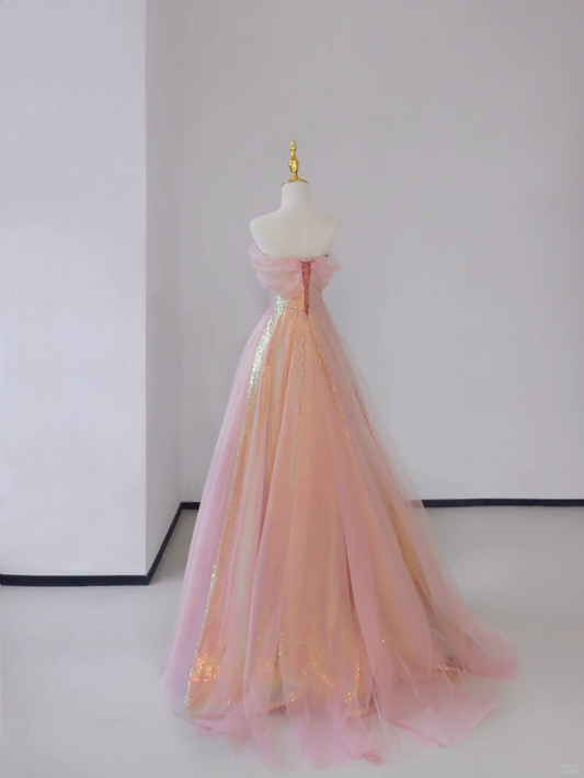Gorgeous A Line Sweetheart Sleeveless Sequin Pink Long Prom Dresses Graduation Dresses DP522