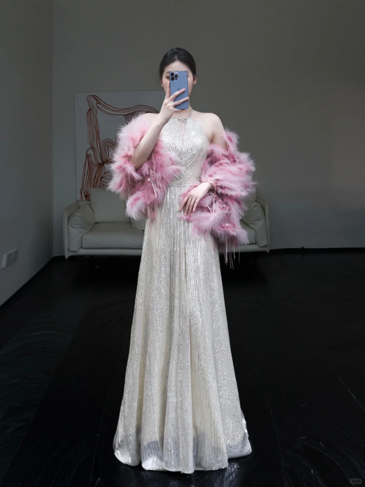 Gorgeous A line Halter Sequin Long Prom Dress Party Dress Graduation Dresses DP867