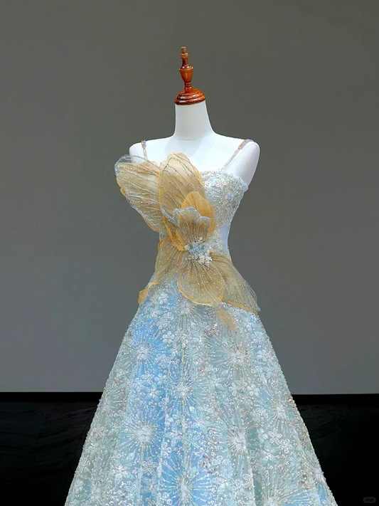 Gorgeous A line Spaghetti Straps Blue Sequin Long Prom Dress Party Dress Graduation Dresses DP821
