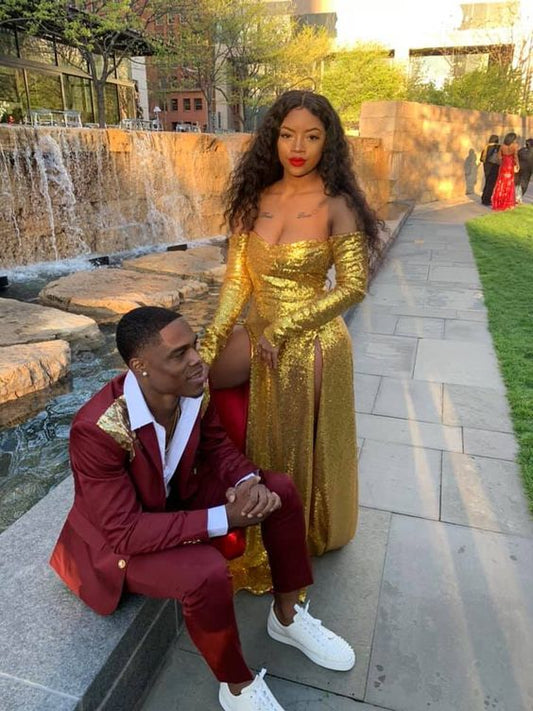 Gold Sequins Mermaid Prom Dress With Slit gh684