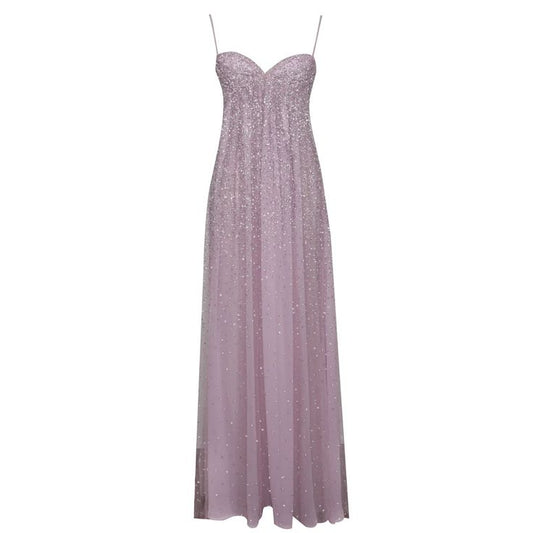 Flowing Chiffon Sequin Print Pink Irregular Skirt Prom Dress P3280