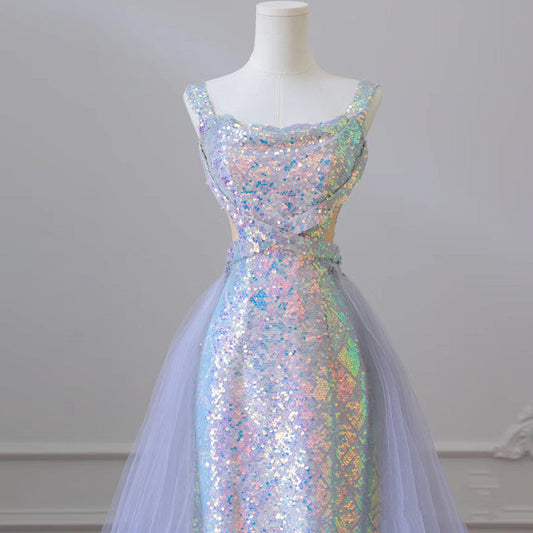 Elegant Mermaid Off The Shoulder Lilac Sequin Long Prom Dresses Party Dress Summer 20th Birthday Outfits 18th Birthday Dresses W1018