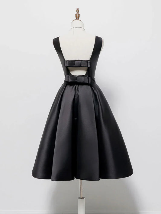 A-Line Satin Black Satin Short Prom Dress, Black Homecoming Dress ED0608