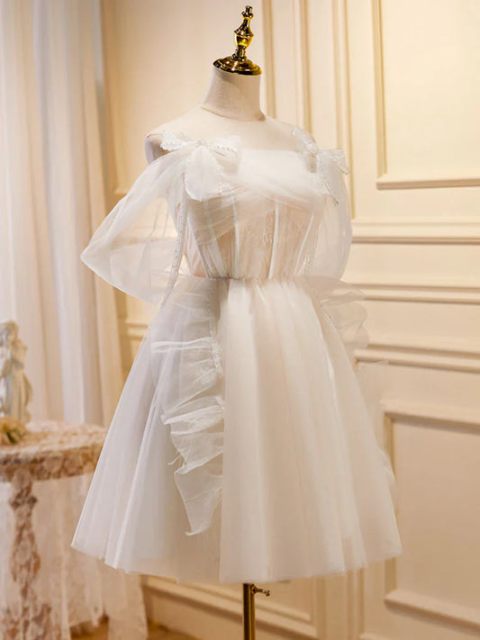 A-Line Beige Tulle Short Prom Dress, Beige Cute Homecoming Dress ED0646