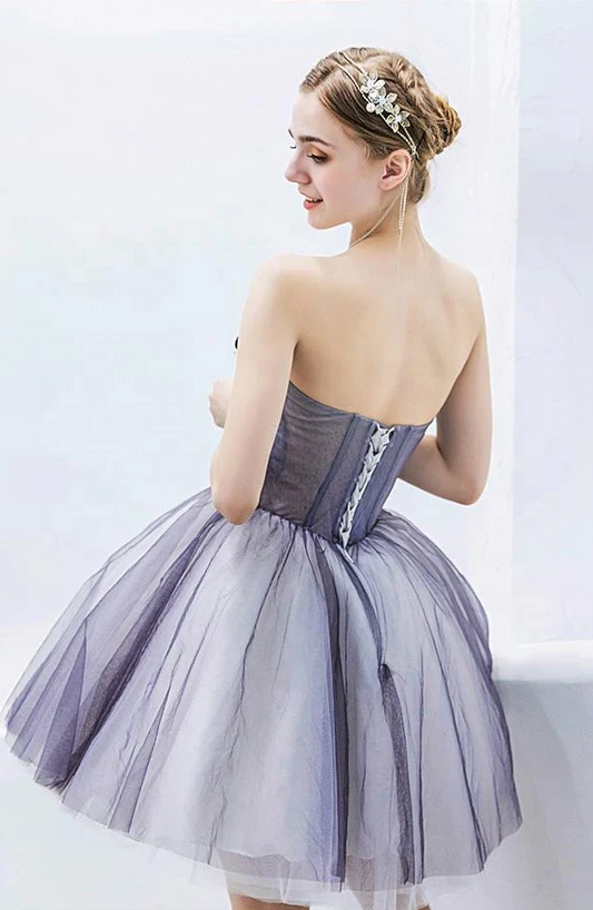 Gray Sweetheart Neck Tulle Lace Short Prom Dress, Cute Homecoming Dress ED0643