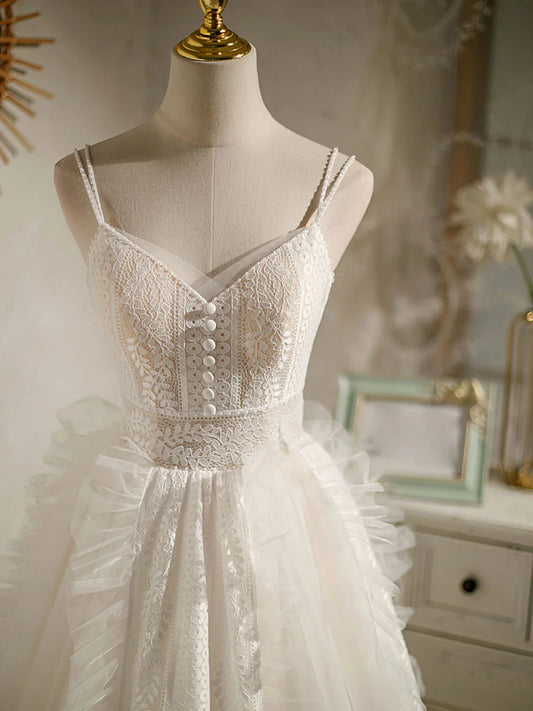Cute Tulle Lace Light Champagne Short Prom Dress, Cut Homecoming Dress ED0609