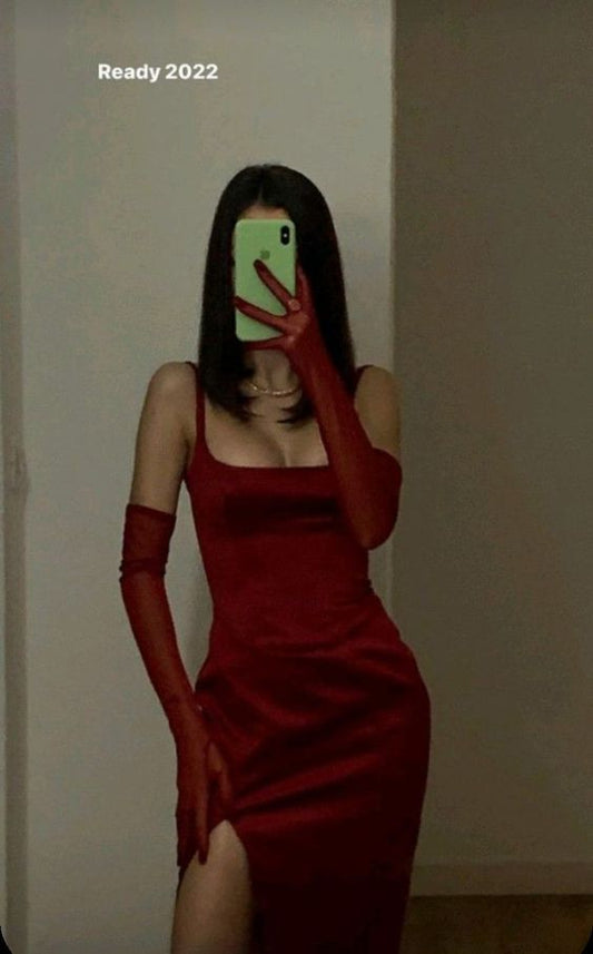 Simple Mermaid Long Rust Red Slit Prom Dress P1456