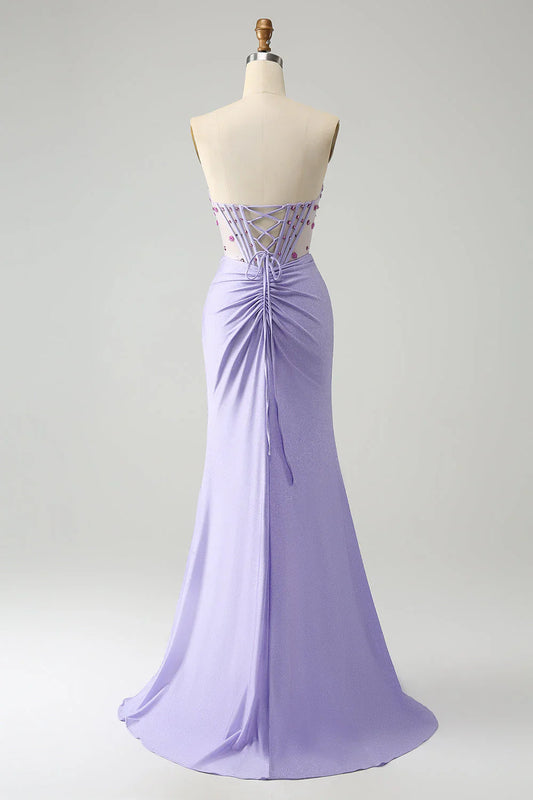 Sexy Mermaid Strapless Long Grape Slit Prom Dress P1556