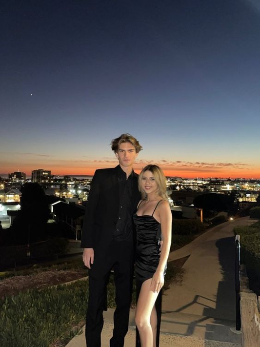 Classic Black Satin Long Prom Dress Slit Evening Dress Party Dress SH889
