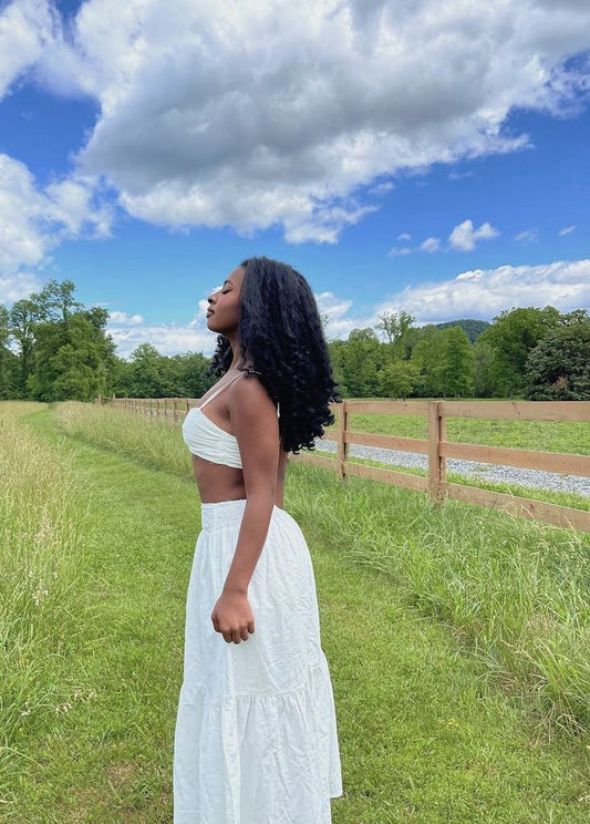 Two Piece Long Prom Dress with White Lace Top fg6170